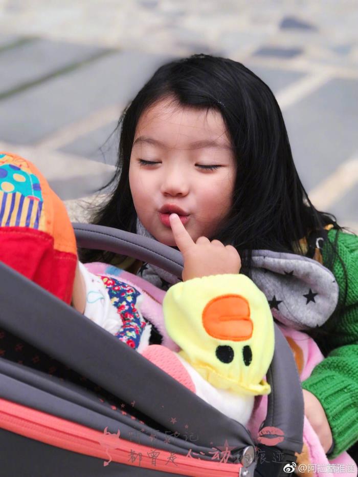 2月4日,阿拉蕾崔雅涵的微博上晒出一组阿拉蕾推着自己妹妹出门晒太阳的照片。