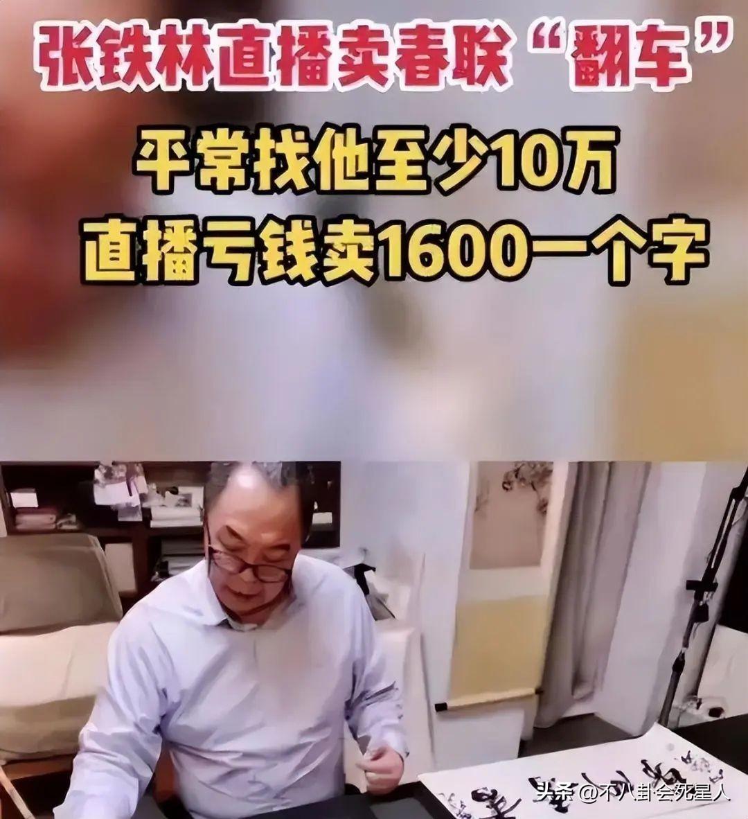 和刘晓庆一样,张铁林晚年也开始打起了“卖书法字画”的主意。他在直播间里写的一个“福”字要卖1688元。