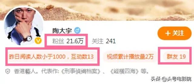 不仅是现场,在网络社交账号上,陶大宇的粉丝也不多,微博上粉丝仅21万多一点,互动数据也很少。如今种种这些,更加让人唏嘘他曾经的辉煌和如今的反差。