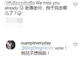 徐静蕾晒出抱着孩子的照片后,6月14日,徐静蕾在与网友的互动中被问到“这么大了”,徐静蕾则表示:“是啊!上次咱们去还是小baby”,在与另一位网友的互动中,对方的孩子问“我干妈去哪儿了?”徐静蕾则回道:“我儿子想我啦!”,言语中也透露了与这两个孩子的关系。