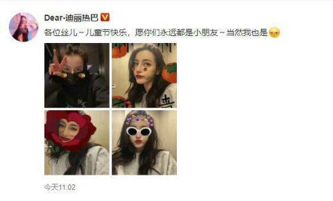迪丽热巴儿童节自拍新鲜出炉用可爱滤镜贴纸少女心炸裂