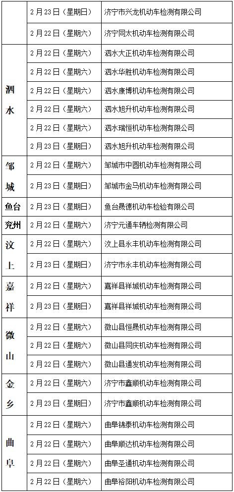 济宁市机动车检验机构周末延时服务一览表公布