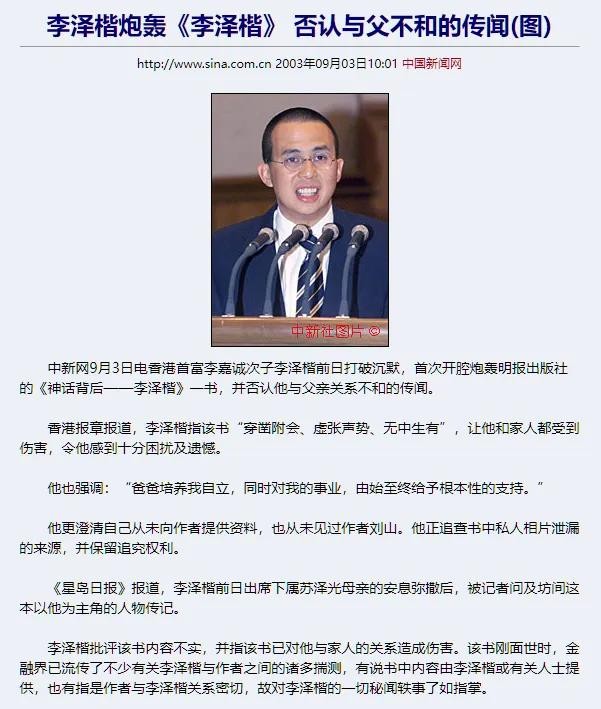 由此可见,父子关系还算不错,而且这本传记出版后不久,就被清理干净,市面上很难看到踪迹了;而李泽楷也曾出面否认,炮轰传记是无中生有,一派胡言。