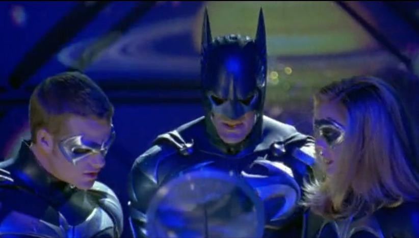 这部电影烂得也情有可原,比前作更浮夸的特效和制作水平。比如蝙蝠侠和罗宾等人的制服,塑胶感十足,胸部的处理还凸了点,一堆人吐槽像是情趣制服,故事剧情完全无脑,特效场面浮夸虚假。