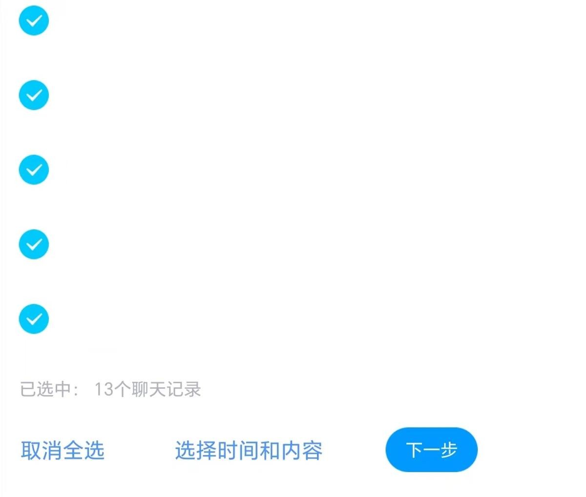 7.在这里,可以根据自己的需要,选择一部分或全选所有的聊天记录;