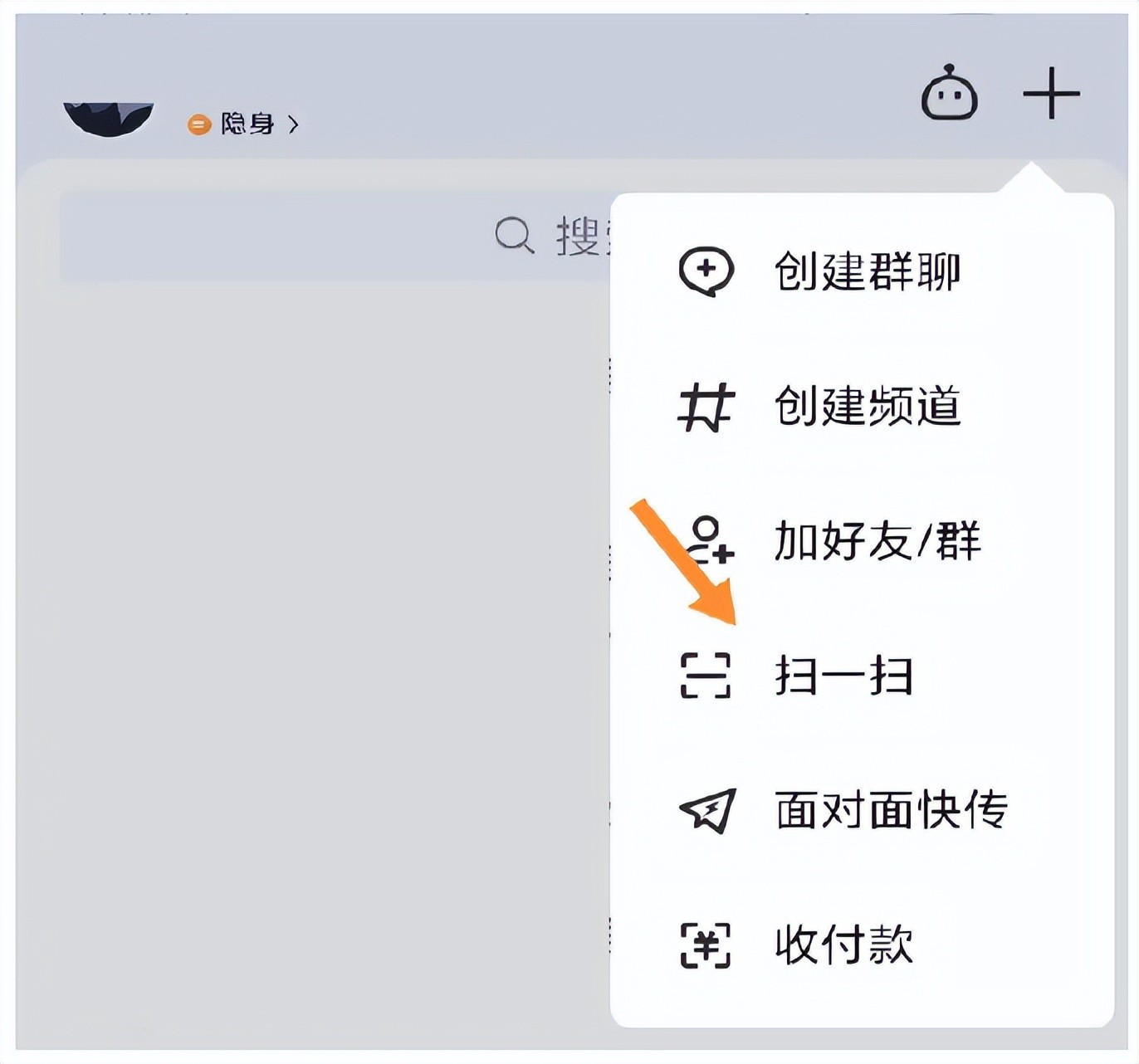 2.点击右上角的“+号”,选择“扫一扫”功能,再扫旧手机上生成的二维码;