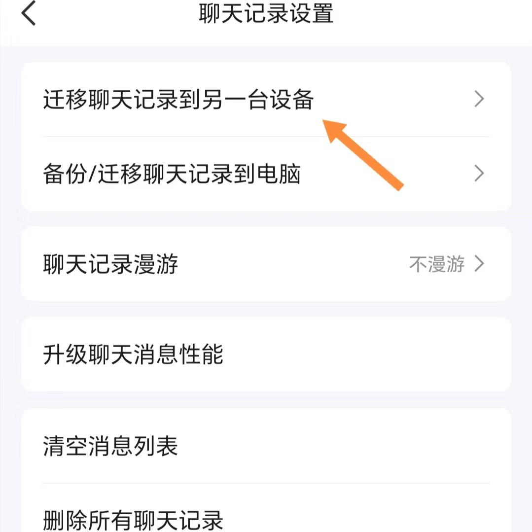 5.再点击“迁移聊天记录到另一台设备”选项;