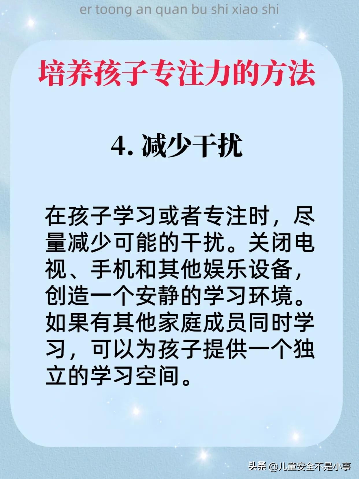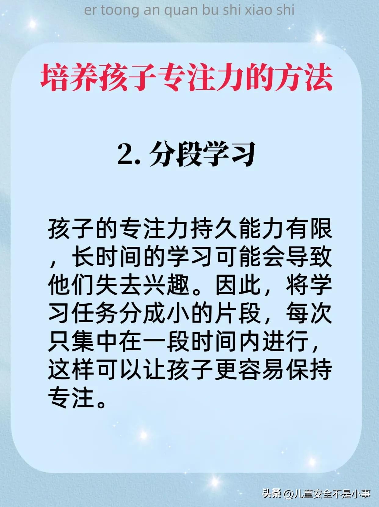 专注力,是一种内心的修行,也是一种对真理的追求。它是孩子们培养自律和坚持不懈的关键。当孩子们投身于学习的海洋时,只有通过专注力的引导,才能深入探索知识的深渊。专注力如同一把锋利的镰刀,除去了学习旅途上的杂草,让智慧的种子能够顺利生根发芽。在这个信息爆 炸的时代,只有拥有坚如磐石的专注力,孩子们才能在知识的海洋中航行无 忧。