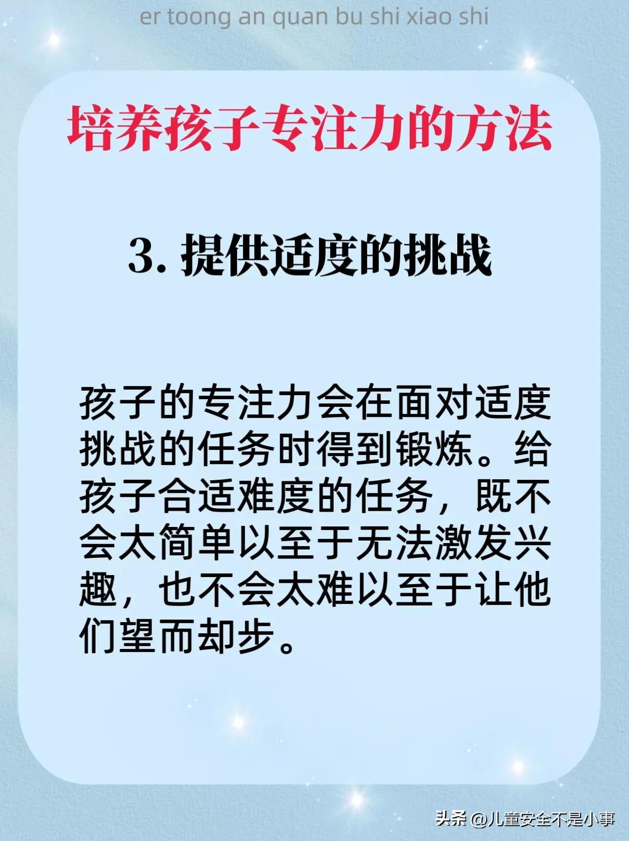 孩子们的专注力,如同璀璨的星辰,点缀在他们的成长历程中。它如一只魔法手,轻轻地触碰孩子们的心灵,激发出无限的潜能。当孩子们聚焦于一件事情时,他们的思维变得敏锐,动作变得灵巧,创造力与想象力也在这一刻得到充分的释放。只有专注力的陪伴,孩子们才能真 正感受到世界的美妙与奇迹。