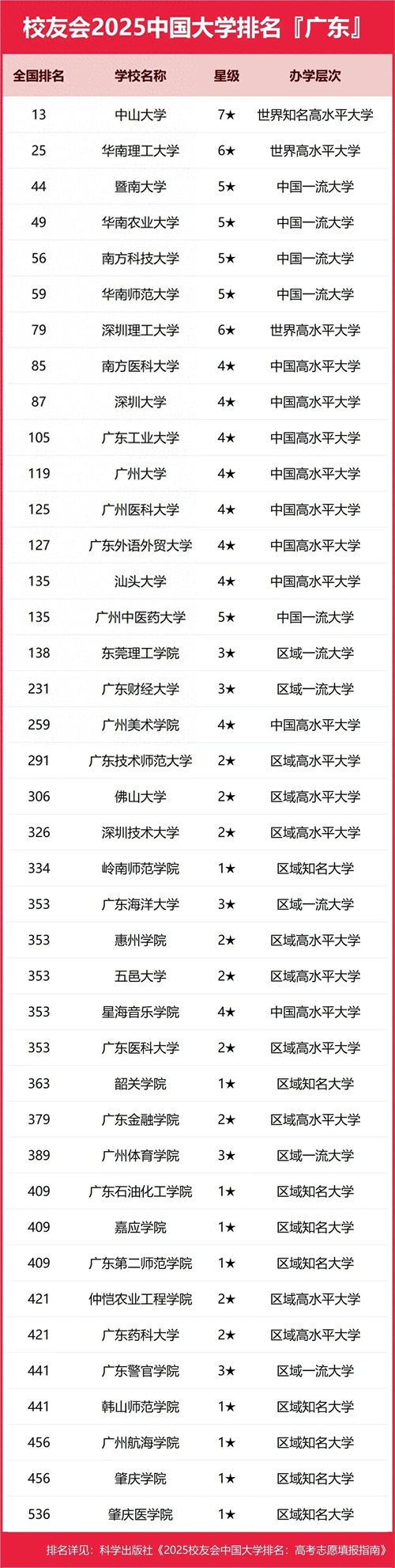 广东省高校最新排名:暨南大学第3,广财大第17,肇庆学院第39!