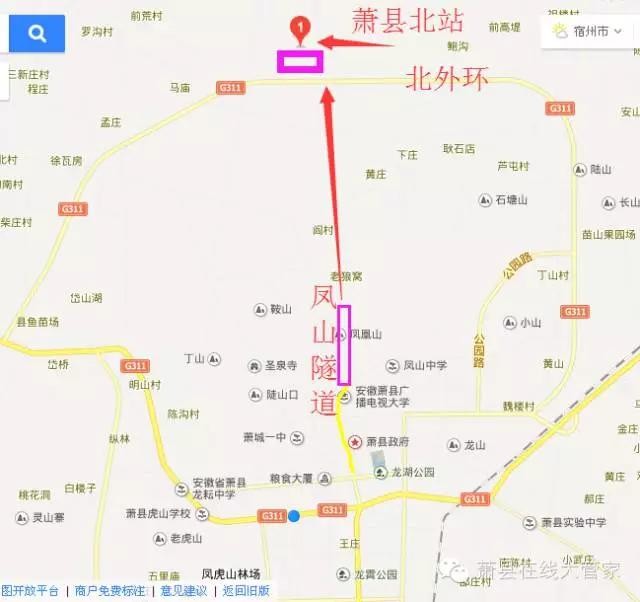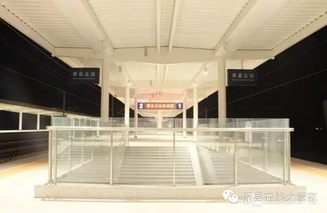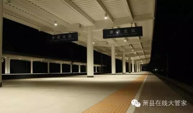 远眺站台,隐约可见静态标示上“萧县北站欢迎你”几个大字