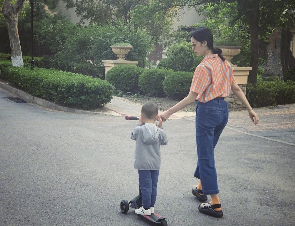 相较于黄多多和黄少艾的高曝光,黄磊夫妇对于小儿子则保护得非常好,晒出的照片多是背影照或是侧面照。