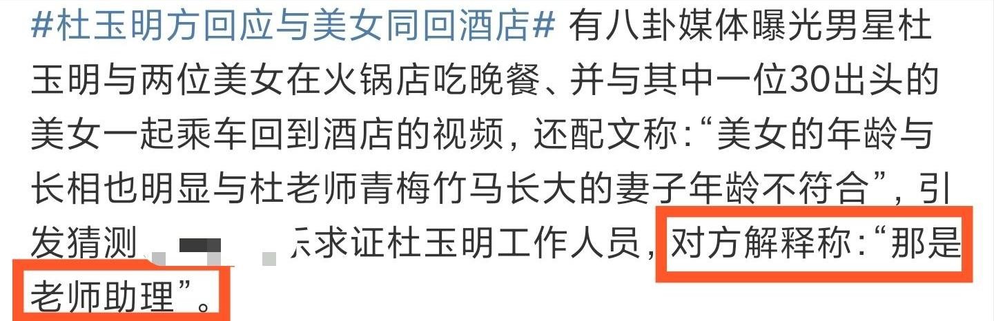 据悉,杜玉明去年就被曝光过与两位美女一同吃过火锅,并在饭后与其中一人同住酒店。