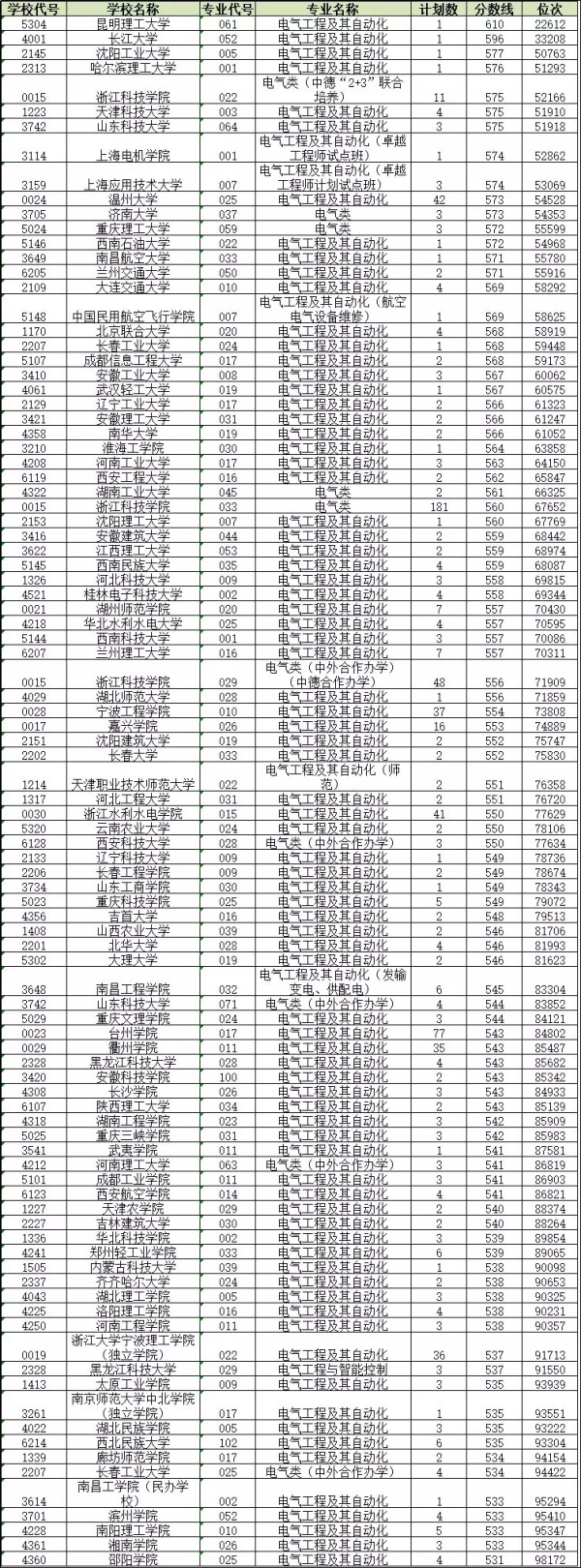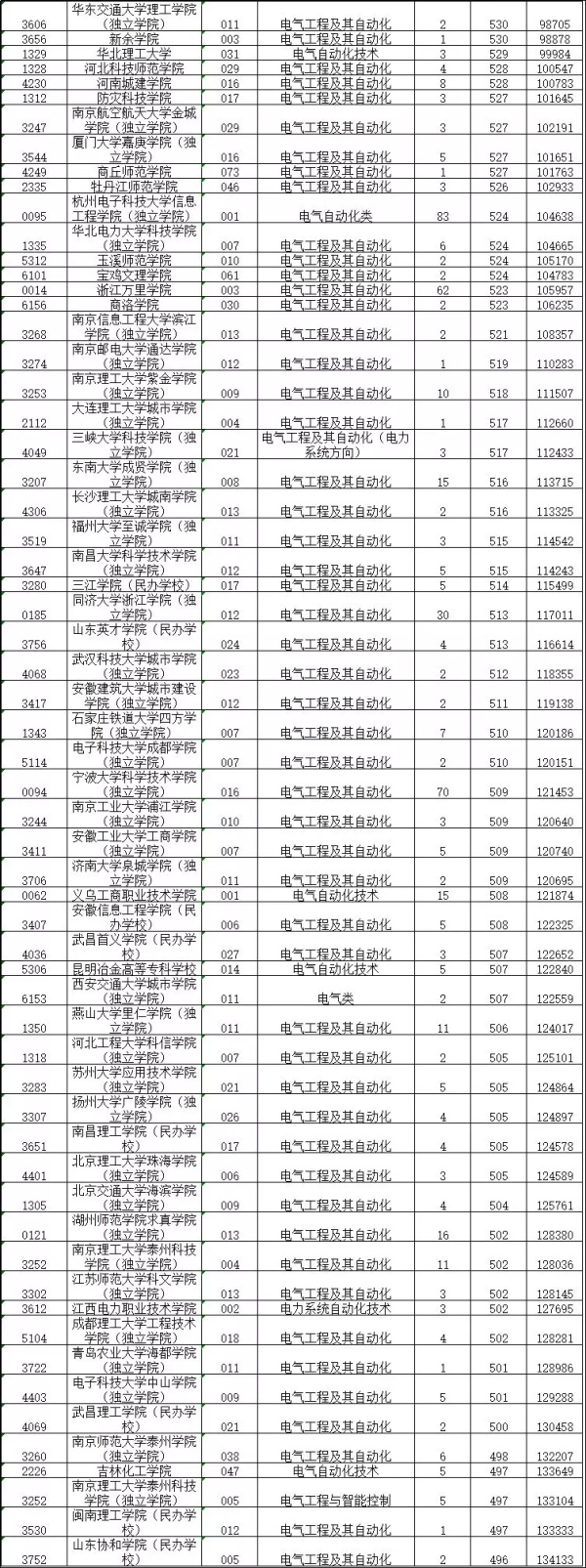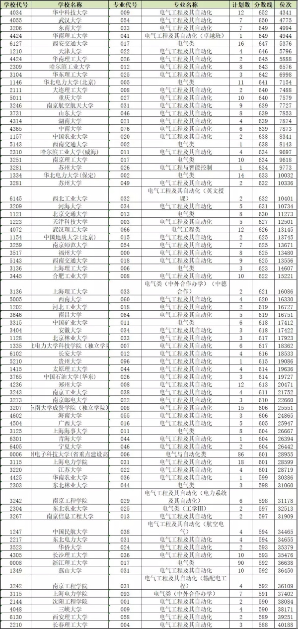 选考物理的小伙伴们,多少分多少位次可以上电气工程及其自动化?