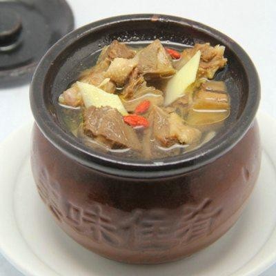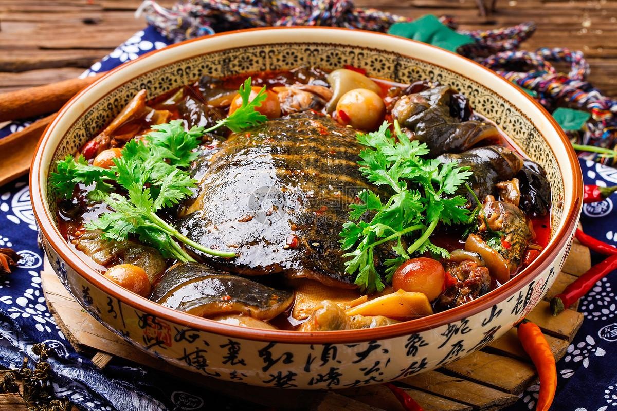 火腿炖甲鱼是安徽地区特色传统名菜,属于徽菜。以徽州山区特有的“沙地马蹄鳖”为主料,火腿及火腿骨等为佐料,口味鲜香,烹饪难度大。甲鱼有较好的净血作用,常食者可降低血胆固醇,因而对高血压、冠心病患者有益;甲鱼还能“补劳伤,壮阳气,大补阴之不足”;对肺结核、贫血、体质虚弱等多种病患亦有一定的辅助疗效。