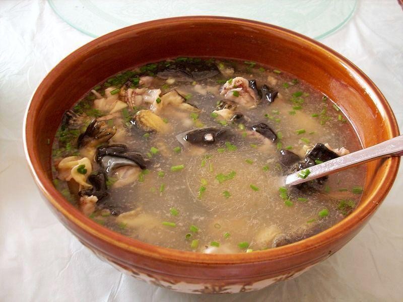 清蒸石鸡是安徽徽州传统名菜,此菜汤清香郁,肉细嫩柔滑,原味鲜醇,素以珍品著称。石鸡是栖息在山涧石缝中的一种蛙类动物,乃黄山特产。以休宁县大阜瀛所产最为著名。黄山石鸡每只重五两左右,腹乳白,背黑有条纹,肉质细嫩,含有丰富的蛋白质、钙等营养成分,并且具有清火、明目、滋补身体的功能,是山珍上品。