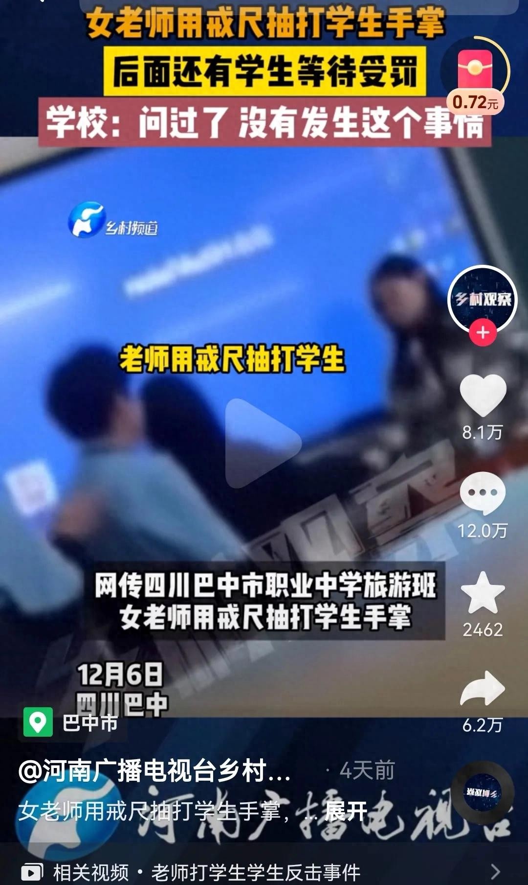 四川女教师用戒尺打学生手掌视频,引发网友争论