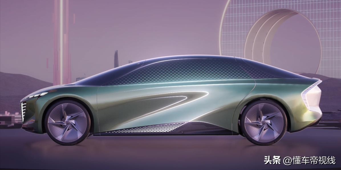 红旗Sedan EV概念车基于红旗全新FMEs平台架构开发,因此其侧面造型比例具有短前/后悬和长轴距设计,这也是纯电平台车型的造型特征之一。与此同时,该车侧面造型弱化了传统三厢轿车设计风格,其发动机舱盖与A柱、C柱与后备厢的过渡相对平滑,或可对降低整车风阻系数可提供一定帮助。