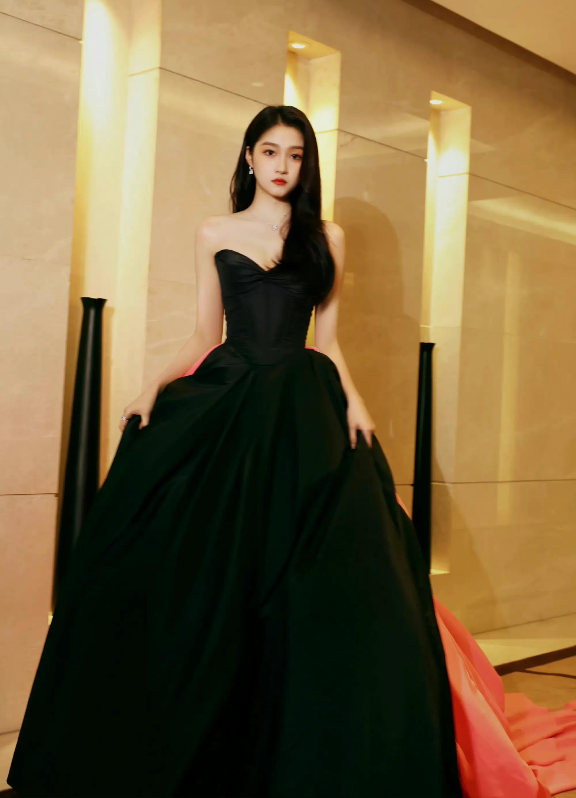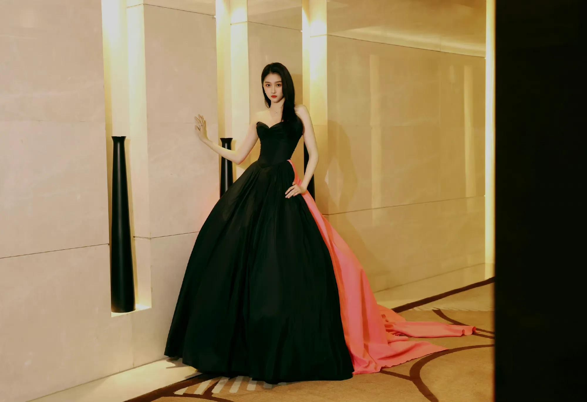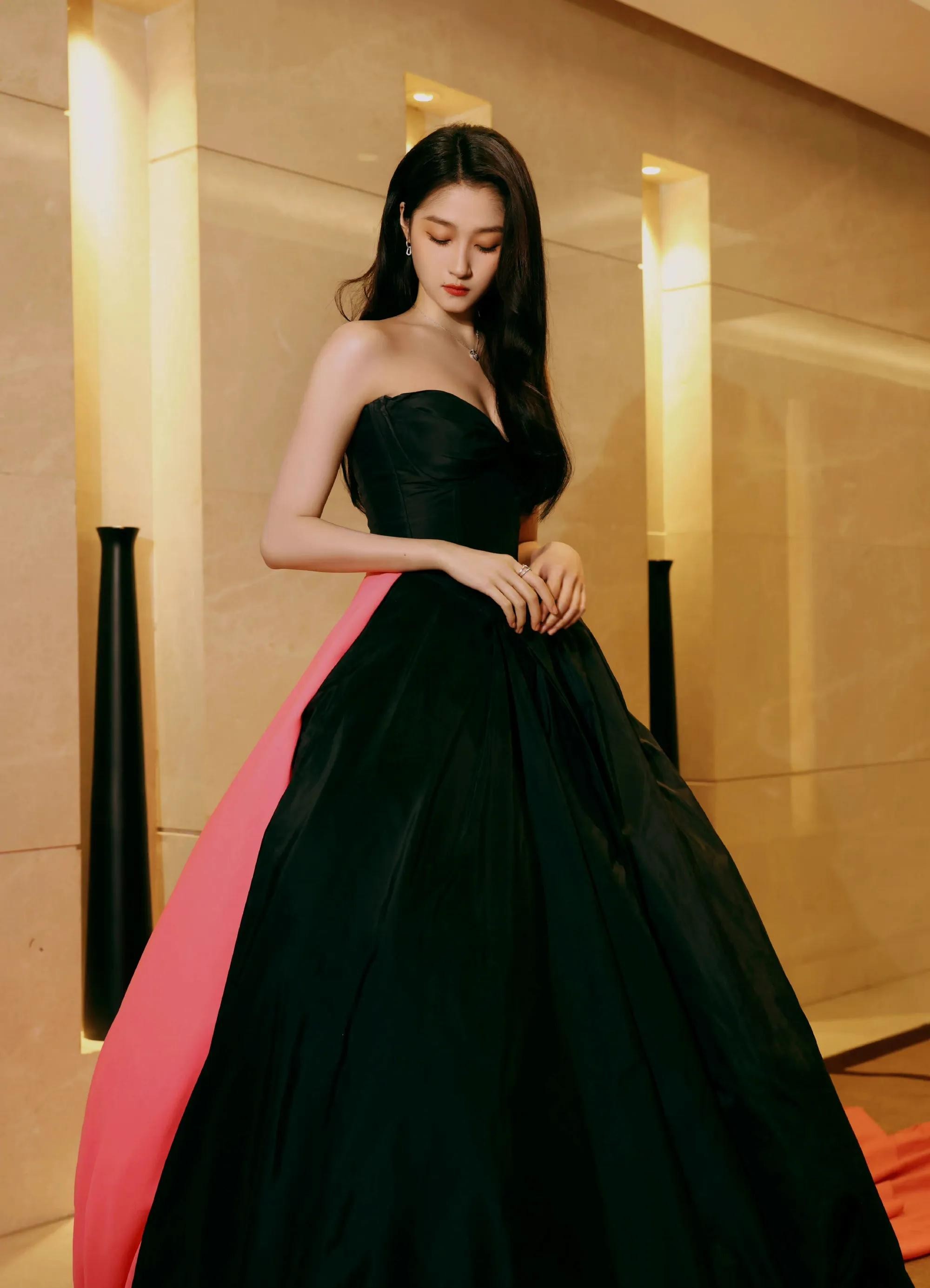12月27日,关晓彤亮相2022国剧盛典,身穿一袭撞色抹胸礼服,一面黑色,一面桃红,拼接裁剪,凸显优雅俏丽,美丽迷人。