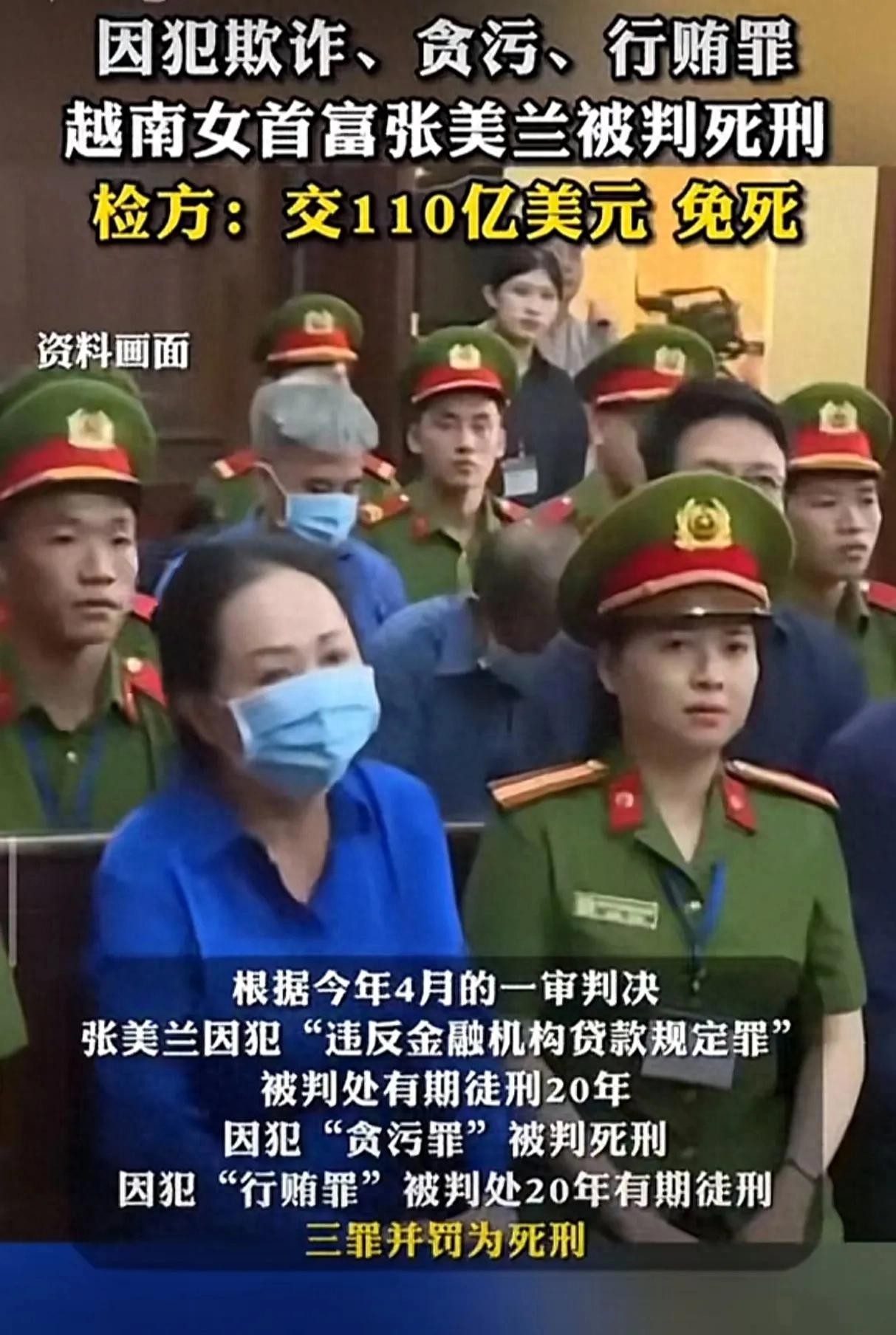 近日,彭博社报道:越南对张美兰表示若想免除死刑,需返还约110亿美元(折合人民币795亿元)。