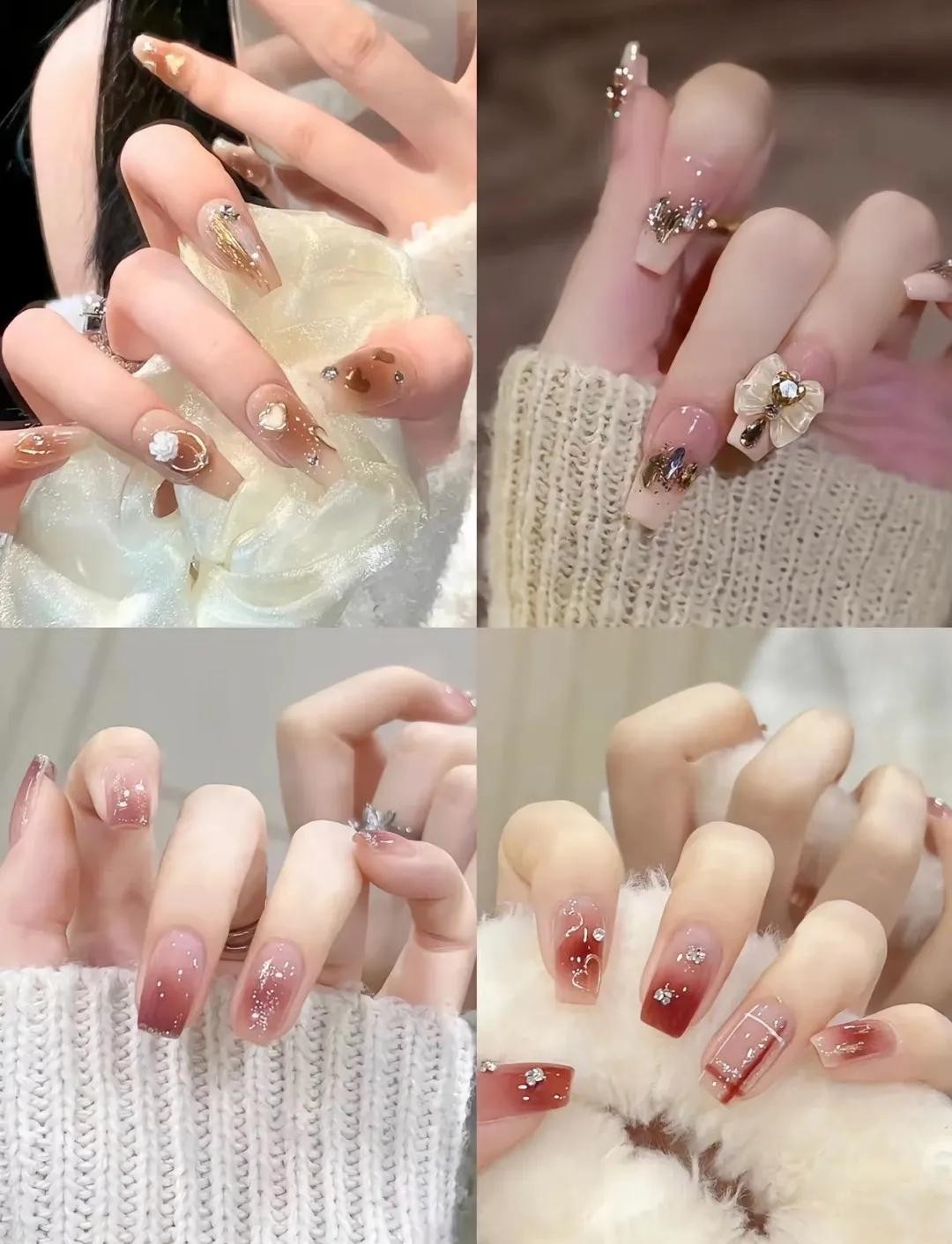 2025年,自然风格的美甲越来越受欢迎。在这个风格中,大地色调的使用尤为突出,比如浅棕色、裸色和草绿色等,这些颜色能够展现出一种亲近自然的感觉。在美甲上加入一些简单的植物图案,如小叶子或花朵,立即让你的指尖充满生机。