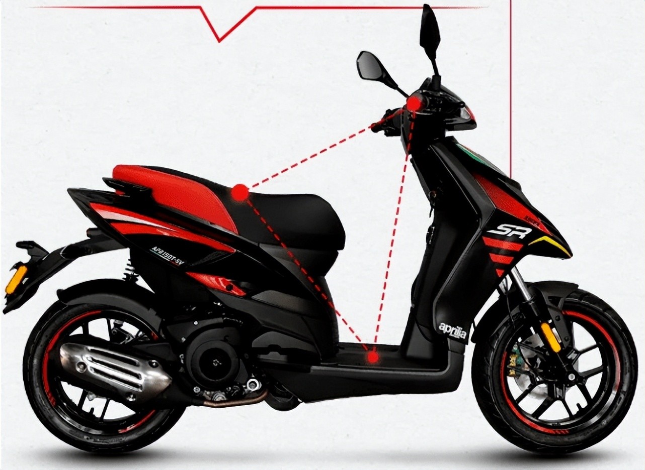阿普利亚SR150轴距是比较短的,轴距1355mm;坐姿空间,比较紧凑,如果个子较大的车友可能第一感受是“憋屈”。较小车体本以为会有较轻的车重,整备质量124kg,并没在功重比上讨到太多便宜。
