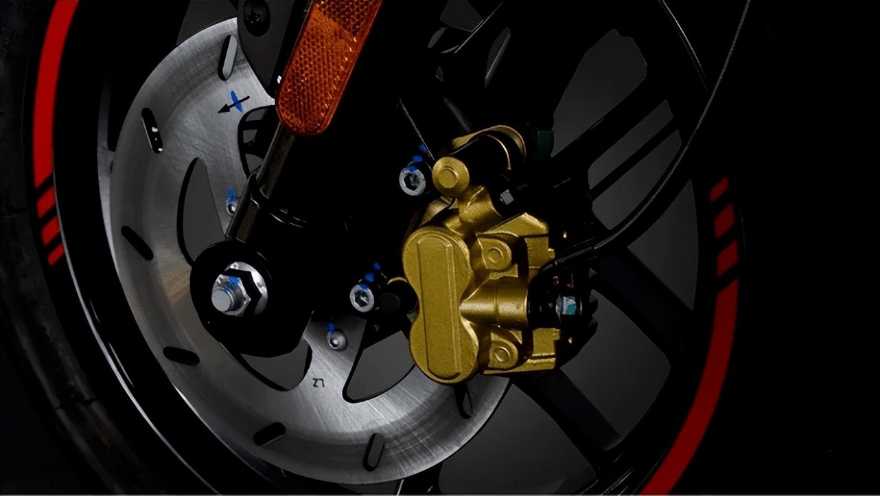 采用正置前叉和单侧置后减,刹车系统稍微对不起“运动”的定位,采用前碟后鼓的配置。油箱容积7L。轮胎采用前120/70-14,后120/70-14的组合方式。