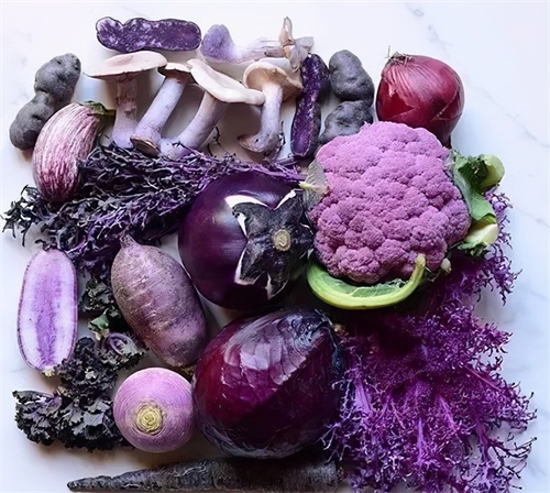 比蓝莓、紫甘蓝、葡萄、紫薯等