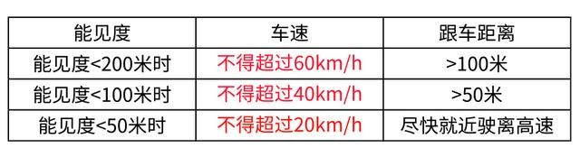 另外,保持合理的车距也非常重要,在雾霾天气里,合理的车距应该视雾霾大小随时调整。尤其是在遇转弯或前车超车时,要注意观察、判断,以防突发情况来到时措手不及。如果是行驶在高速公路,那么要注意按以下要求保持安全车距和车速。