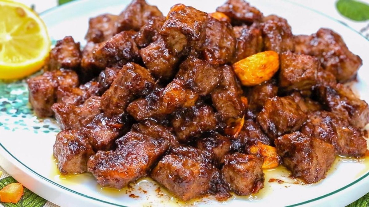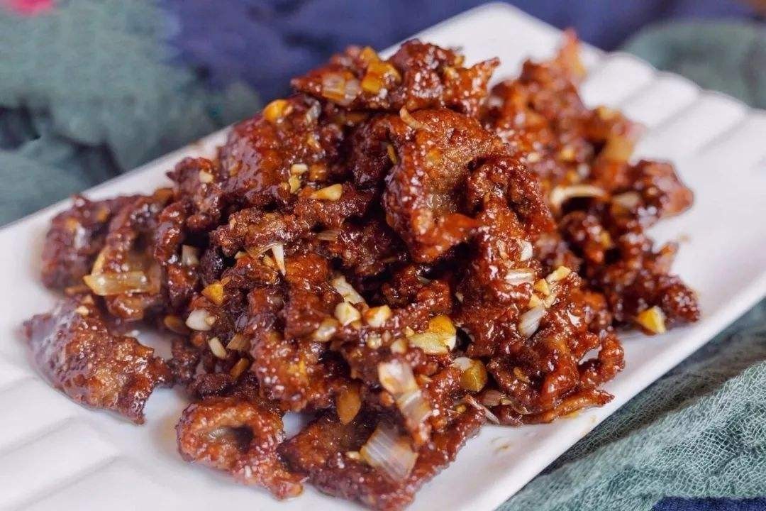 黑蒜子牛肉粒是一道有名的天津菜,光是听名字,就感觉口水都要流下来了。