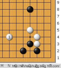 图1-2,白4托角是第一种应法,应该说是不太好的下法。