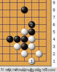 图1-21,如果前图黑作战不成立,黑5只好黑1扳,白2吃住黑一子,也是两分吧。