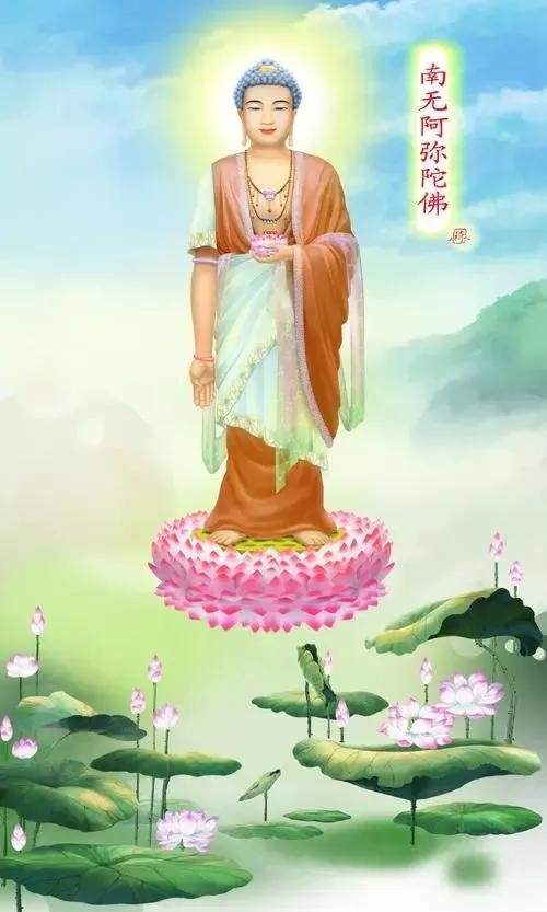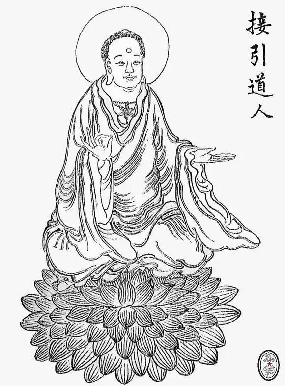 接引佛祖:南无宝幢光王佛、阿弥陀佛、无量光如来、无诤念王、世饶王、无量光佛、无边光佛、无碍光佛、无对光佛、炎王光佛、欢喜光佛、智慧光佛、无量寿佛、无量佛、无量清净光佛、月巴墨佛(藏传佛教称呼)、接引道人。号法藏。居住在西方极乐世界大雷音寺。坐骑为十二品莲台。