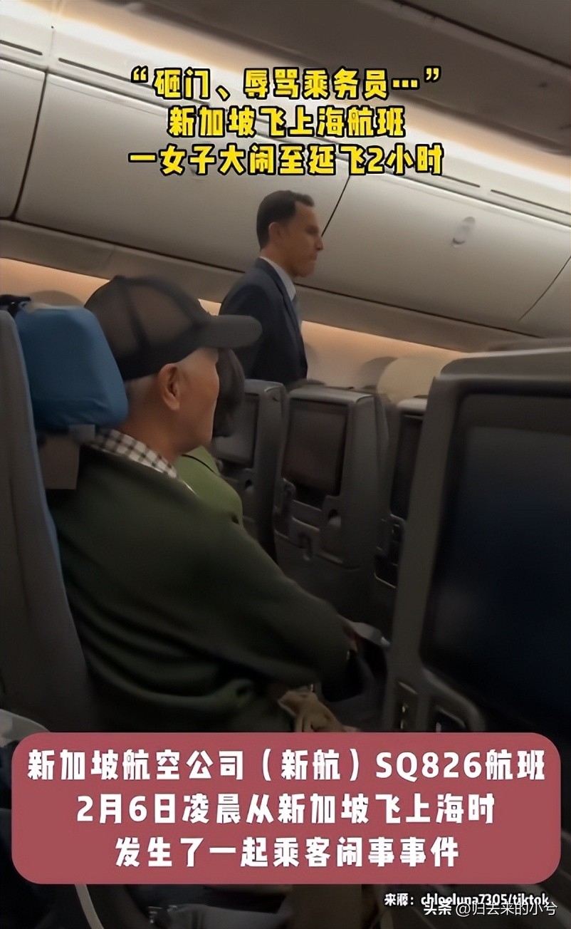 原定2月6日凌晨1点15分从新加坡飞往上海的新航SQ 826航班,因为一名女子在飞机滑行阶段非要上厕所。