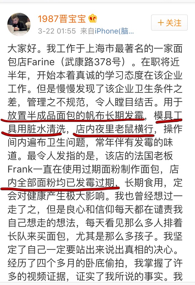 昨天深夜,一条网友爆料惊呆了无数人,位于武康路上生意超火的法式面包店Farine被举报长期使用过期、变质的面粉做面包!