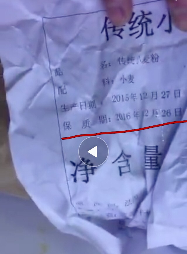 偷拍视频中能看到Farine面包店的后厨堆着很多袋面粉,单子上显示,保质期到2016年12月26日!