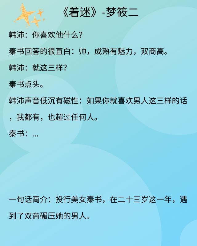 两人属于势均力敌的那种,更属于适合的时间遇上适合的人的类型,秦书属于有点作的人,但韩沛对她很包容,更是容忍她的作,或许这就是情人眼里出西施吧。