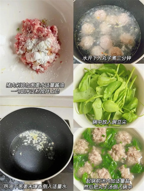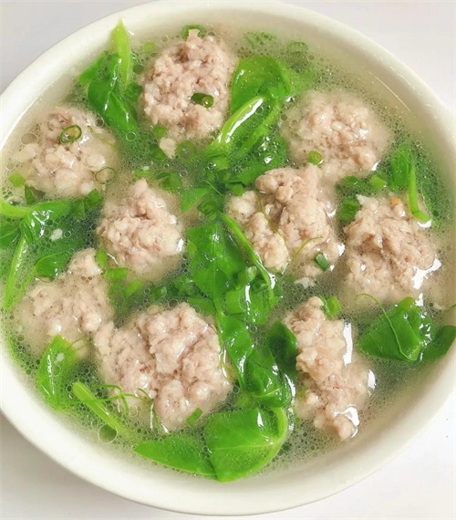 在我看来这碗汤在冬季的含金量实在是太高了,冬天必吃的豌豆尖和肉丸组合在一起别提有多鲜了,这道菜必须安利给大家,赶紧回家试试。
