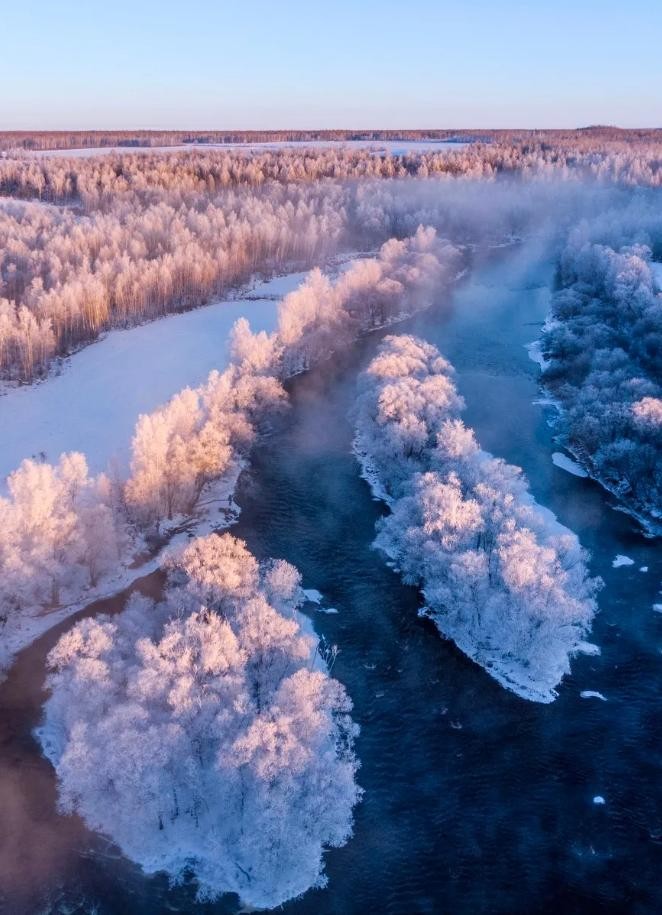 伊春是与俄罗斯隔江相望的小城,下雪后整座城市就像是银色林都,它的雾凇最为出名,一到冬天就让人沉醉。