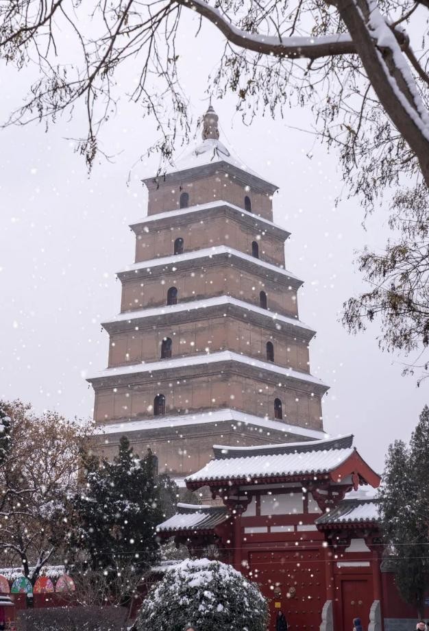 雪后的大雁塔一定要去看看,更显千年古刹的壮观,美绝了。