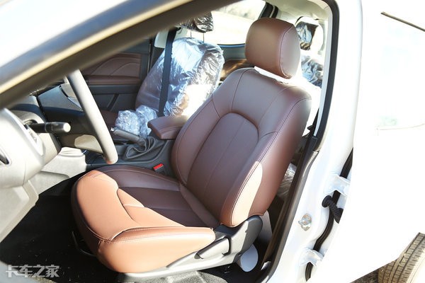皮革材质包裹的座椅十分厚实柔软,乘坐舒适性表现的不错,前排座椅均采用了手动调节方式。