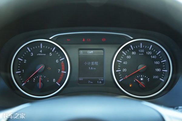 仪表盘样式十分简单,双圆造型读取数字很方便,中央为一块单色行车电脑屏幕,可显示车辆状态信息。
