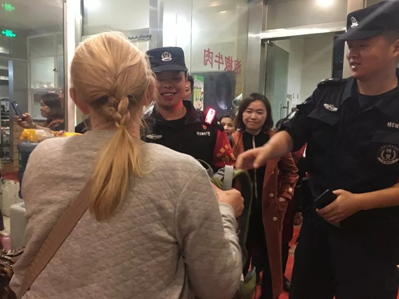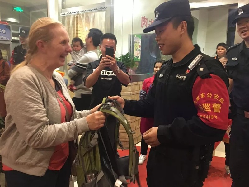 “Thank you very much!You are very helpful!”当他们回到饭店时,发现失主已经在此等候,特巡警双手将包包交给她时,她眼睛里浸满泪水,激动地向大家表达感激之情。