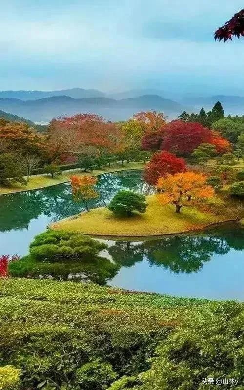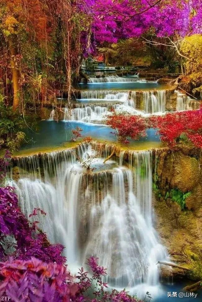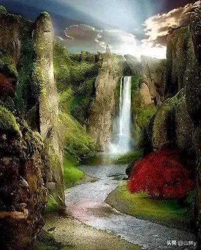 青山绿水,五彩斑斓的树木,绿草如茵的草地,仿佛仙境一般的地方。