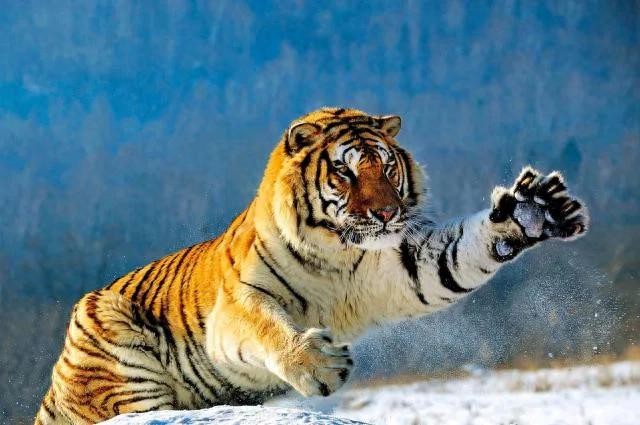 东北虎的牙齿和爪子是其捕猎能力的重要组成部分。它们的犬齿非常锋利,能够轻易穿透猎物的皮肤和肌肉,确保猎物在被捕时无法逃脱。此外,东北虎的爪子也非常强壮,能够牢牢抓住猎物,防止其挣扎逃脱。爪子的结构和强度使得东北虎在捕猎时能够有效地控制猎物,增加成功率。东北虎的牙齿和爪子不仅是捕猎的工具,也是它们在与其他动物竞争时的武器。在面对其他掠食者或威胁时,东北虎能够通过展现其强大的攻击力来保护自己和领地。这种生存策略使得东北虎在自然界中占据了重要的生态位。