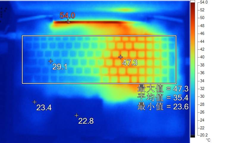 这温度不能算特别牛逼,但绝对不算差的了,而且左手经常触碰的区域根本没有热感,这个散热布局非常科学。