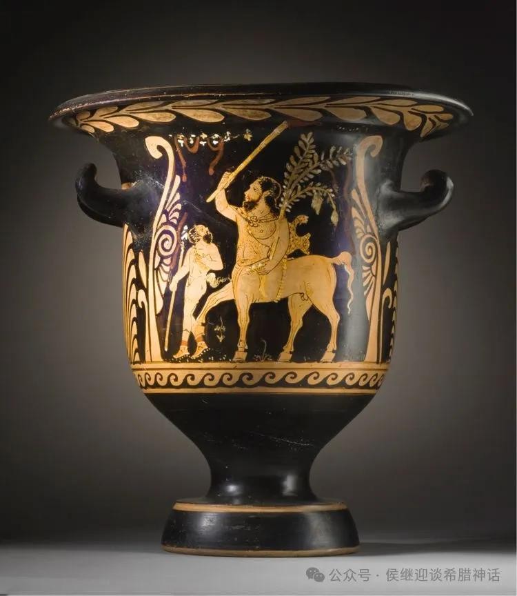绘有喀戎形象的希腊红绘瓶画(公元前四世纪)