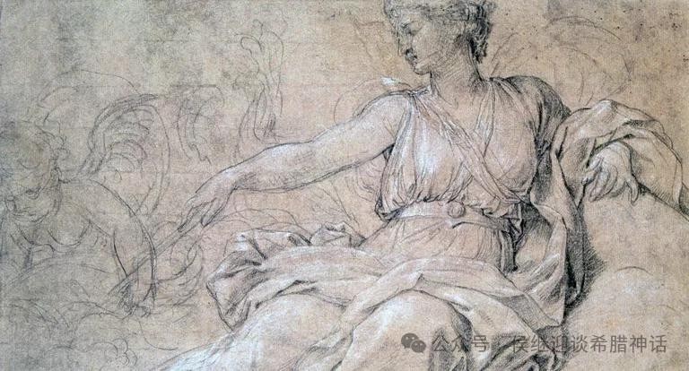 阿尔喀得斯正在吃“永生之乳”。 不过,从这幅画来看,赫拉像是主动哺乳(部分希腊神话版本倒也有这种说法)