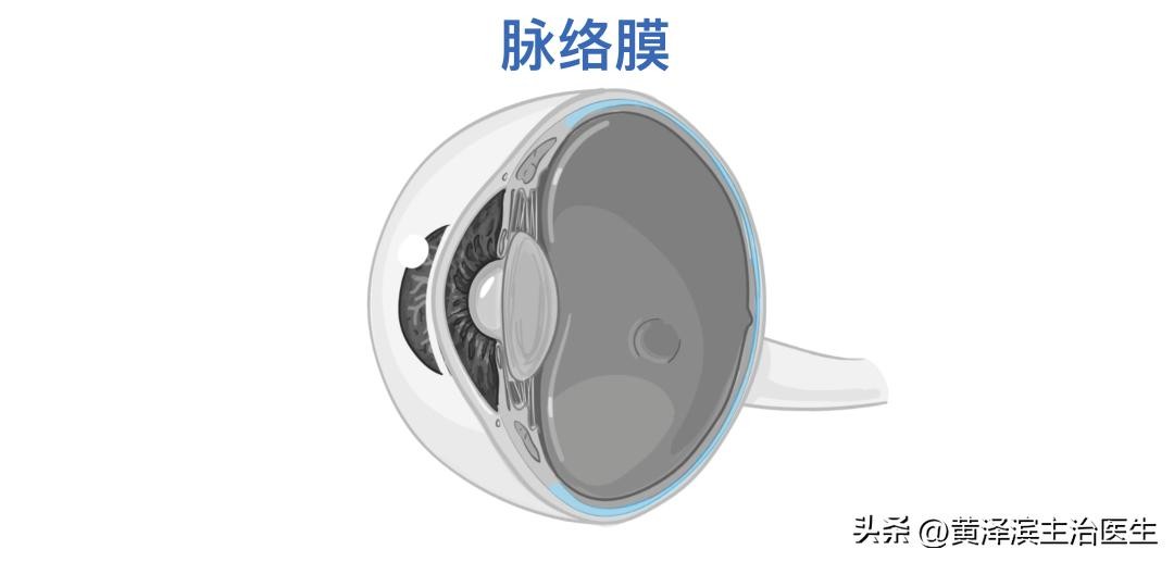 血管层由三部分组成。从后到前依次是:脉络膜、睫状体和虹膜。