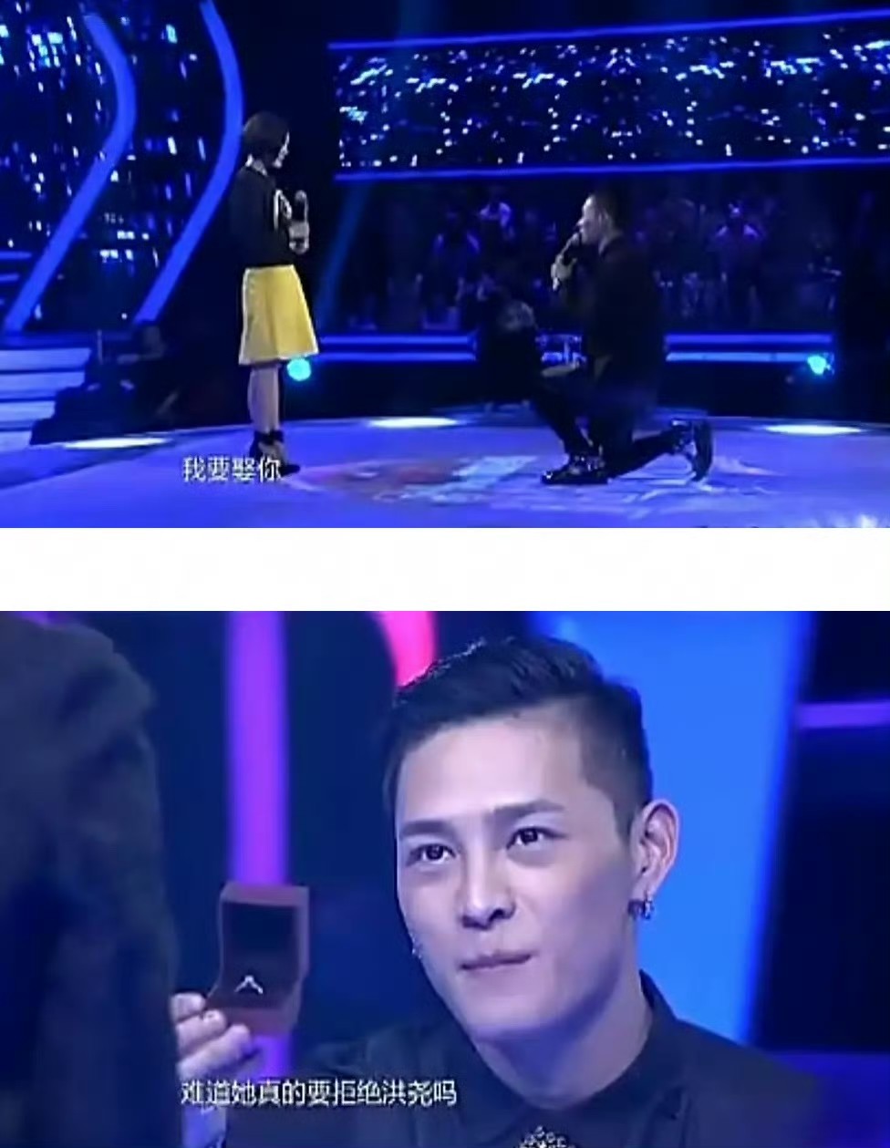 节目后续,洪尧甚至在节目中向曹赢心求婚,单膝跪地,戒指戴上,场面感人至深。